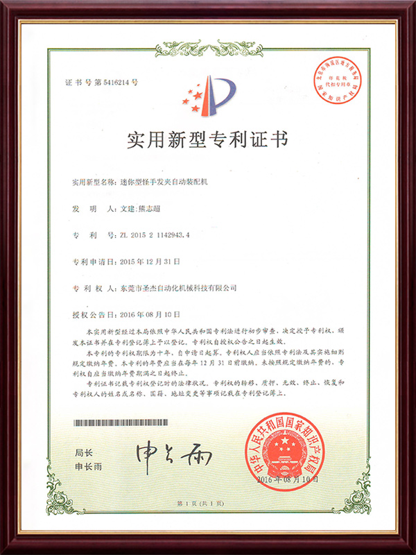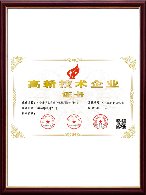東莞市圣杰自動(dòng)化機(jī)械科技有限公司成立于2010年,座落于電子名鎮(zhèn)——廣東省東 莞市石碣鎮(zhèn),注冊(cè)資金800萬,擁有多項(xiàng)發(fā)明專利,實(shí)用新型專利,并通過了 ISO9001質(zhì)量管理體系認(rèn)證,經(jīng)過多年的發(fā)展與技術(shù)沉淀,公司已發(fā)展成為一家專 業(yè)從事非標(biāo)自動(dòng)化設(shè)備研發(fā)、生產(chǎn)、銷售為一體的高新技術(shù)型企業(yè),并在行業(yè)具有 一定的知名度。 圣杰擁有一支高素質(zhì)、高效率且多年從事非標(biāo)自動(dòng)化設(shè)備研發(fā)與生產(chǎn)的工程技術(shù)團(tuán) 隊(duì),為客戶提供工程設(shè)計(jì)、制造安裝、現(xiàn)場(chǎng)調(diào)試、技術(shù)培訓(xùn)等全方位的自動(dòng)化設(shè)備 解決方案。主要涉及行業(yè)有:電子連接器行業(yè),建筑五金行業(yè),儀表行業(yè),汽車配 件行業(yè)等。